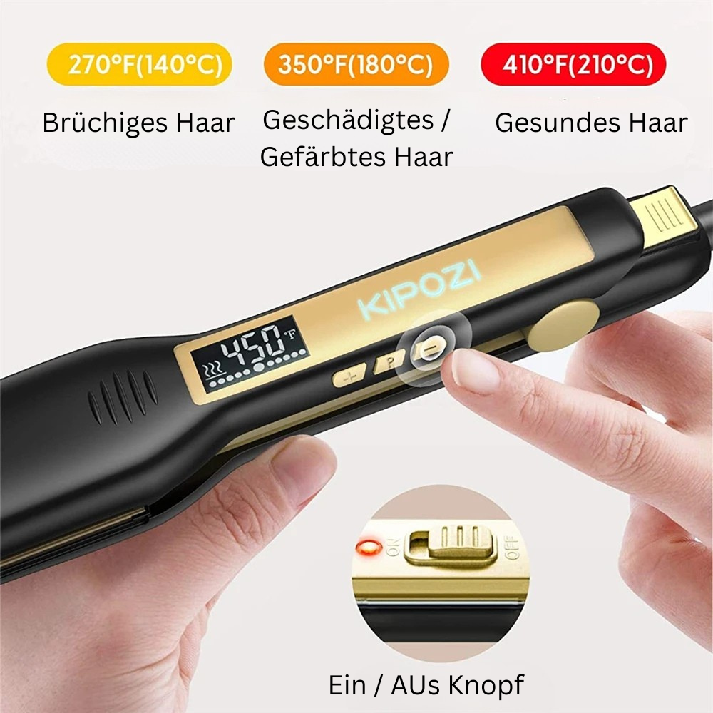 Das GlattPro ist Ihr zuverlässiger Partner für makellos glattes Haar – egal ob trocken oder frisch gewaschen. Dieses professionelle Glätteisen wurde speziell entwickelt, um sowohl trockene als auch feuchte Haare schonend und effektiv zu glätten, ohne sie zu beschädigen.