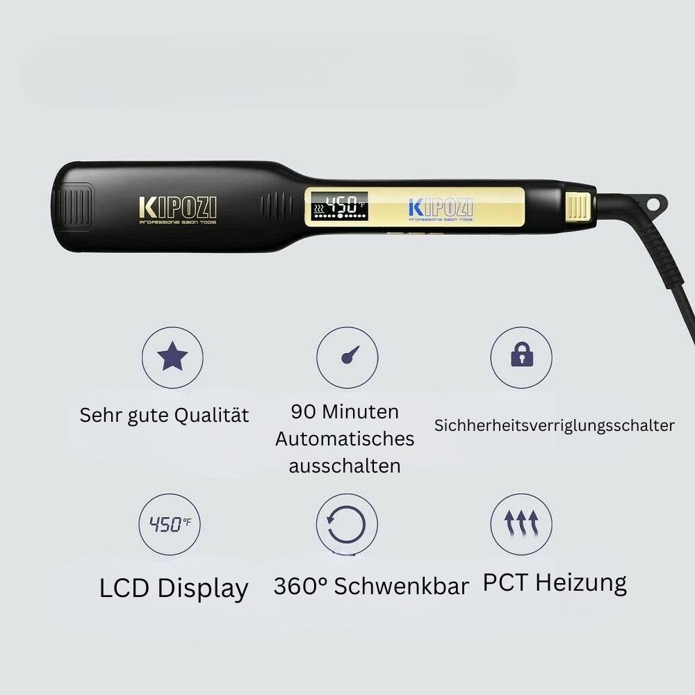 Dank modernster Keramik-Technologie und präziser Temperaturregelung sorgt das Glätteisen für eine gleichmäßige Wärmeverteilung und minimalen Hitzestress. So bleiben Ihre Haare gesund, glänzend und geschmeidig – von der ersten Anwendung an.